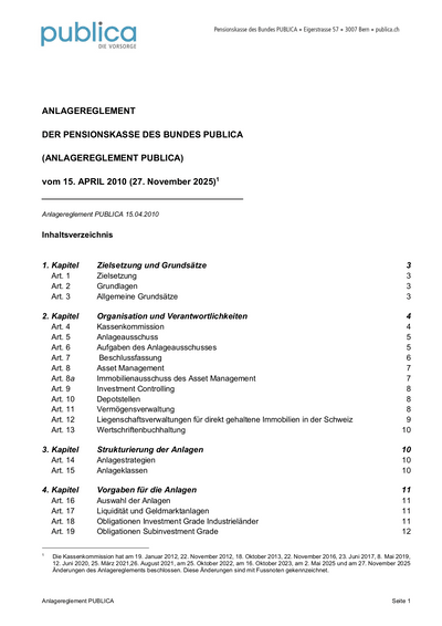 Das Anlagereglement gibt den Mitarbeiterinnen und Mitarbeitern des Asset Managements von PUBLICA konkrete Vorgaben, wie sie die Vorsorgevermögen anlegen: