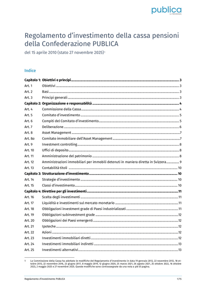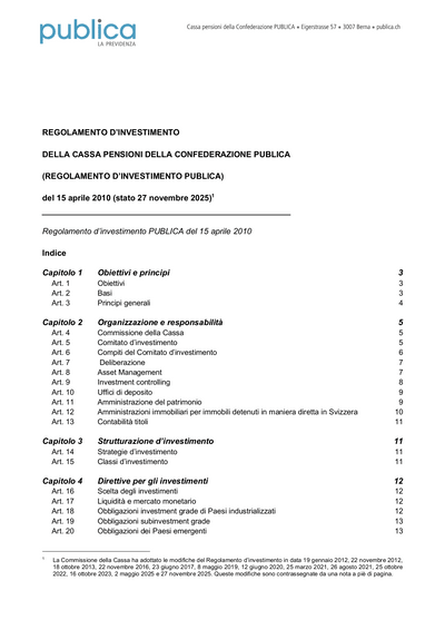 Il regolamento d’investimento fornisce al team Asset management di PUBLICA direttive specifiche su come investire il patrimonio previdenziale.